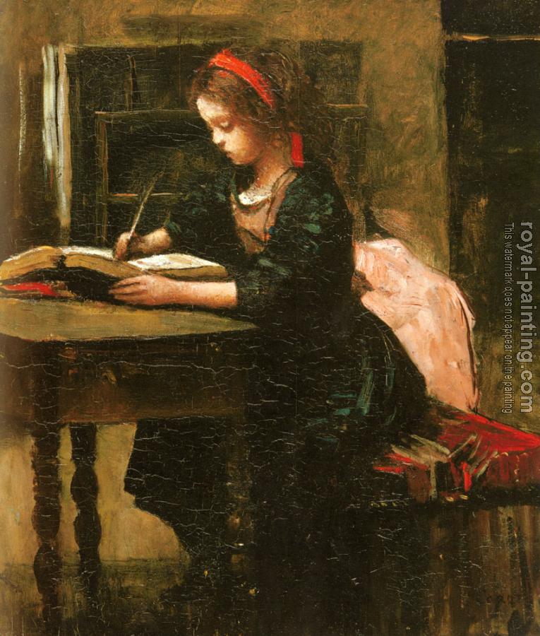 Jean-Baptiste-Camille Corot: Fillette a l'etude, en train d'ecrire