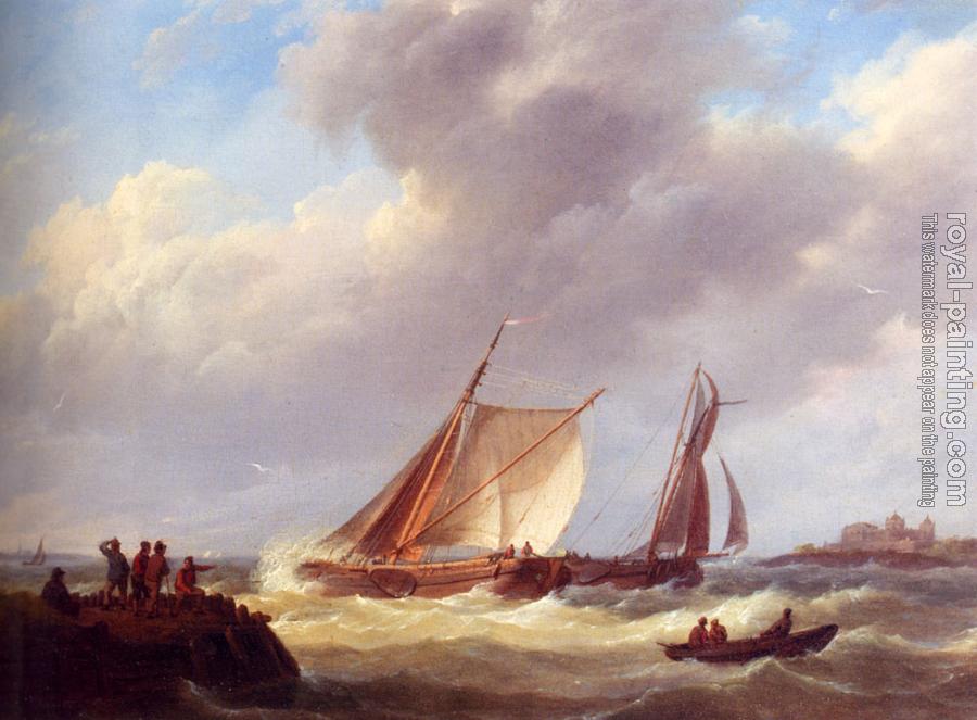Johannes Hermanus Koekkoek: Fishermen On A Jetty Overlooking A River Estuary