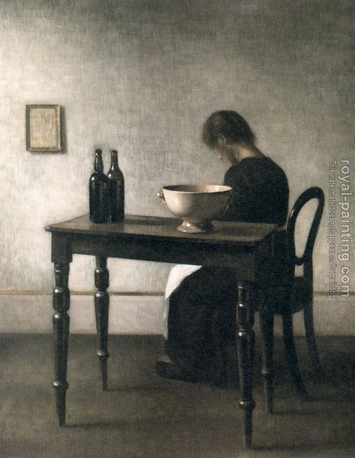 Vilhelm Hammershoi / Young woman sitting behind a table