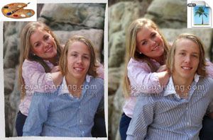 The background of photo is different complex, the cost of portrait paintings will be various. Prices can be higher depending on sizes, complexity, backgrounds etc... Please send us your photo for evaluation. If any objects (such as trees, chairs, house and etc.) need to be removed from the picture, please notice us.